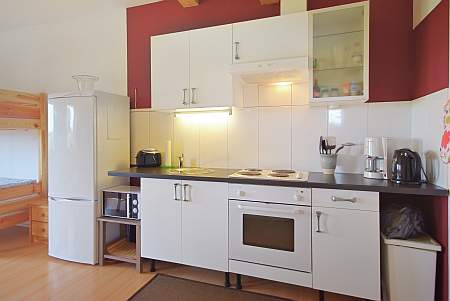 4-Plattenherd, Backofen, Dunstabzugshaube, Einbauküche, Gefrierfach (40 ltr.), Kaffeemaschine, Kochzeile, Kühlschrank, Mikrowelle, Toaster, Wasserkocher